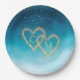 Blue Watercolor Waves mit Monogramm Hochzeit Pappteller