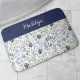 Blue Watercolor Wildflower Monogram Name Badematte