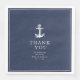 Die elegante Hochzeitssuite bietet klassische nautische Stilelemente mit einem sauberen, minimalistischen Look. Stilvolle Wellen in Schattierungen von Aqua bis Marineblau und eine Anker- und Seilillustrierung bieten einzigartige Akzente. Auf dieser koordinierenden Papierserviette ist der kleine weiße Anker auf marineblau-blauem Hintergrund einfach, aber auffällig. Fügen Sie Ihre 'Dankeschön' Nachricht, Namen und Hochzeitsdatum mit der angegebenen Vorlage hinzu. Ideal für Yacht Club, Boot, Strand oder Sommer Hochzeiten in Urlaubsort. Suchen Sie ID836, um diese komplette Suite und andere mit alternativen Meereselement-Akzenten zu sehen.