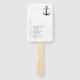 Die elegante Hochzeitssuite bietet klassische nautische Stilelemente mit einem sauberen, minimalistischen Look. Stilvolle Wellen in Schattierungen von Aqua bis Marineblau und eine schöne Anker- und Seilillustrierung sorgen für einzigartige Akzente. Dieser Hochzeitsfan verfügt über einen kleinen Anker in marineblau auf weiß, zusammen mit einer Vorlage, um Ihr Zeremonie-Programm oder Hochzeitsfeiertag Liste, Ihre Namen und Hochzeitsdatum hinzuzufügen. Die Rückseite hat ein auffälliges Porthole-Design auf marineblau. Ideal für Yacht Club, Boot, Strand oder Sommer Hochzeiten in Urlaubsort. Suchen Sie ID836, um diese komplette Suite und andere zu sehen, die alternative Meereselemente-Akzente bieten.