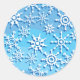 Schöne weiße Schneeflocken auf einem Hintergrund von blauen Wellen.