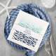 Die elegante Hochzeitssuite bietet klassische nautische Stilelemente mit einem sauberen, minimalistischen Look. Stilvolle Wellen in den Farbtönen von Aqua bis Marineblau und eine Seepferd-Illustration bieten einzigartige Akzente. Auf dieser koordinierenden Papierserviette, einem mit Marineblau über abstrakten Wellen umrandeten weißen Banner, entsteht ein einfaches, aber auffälliges Etikett für Ihre Namen und Ihren Hochzeitstag. Ideal für Yacht Club, Boot, Strand oder Sommer Hochzeiten in Urlaubsort. Suchen Sie ID836, um diese komplette Suite und andere mit alternativen Meereselement-Akzenten zu sehen.