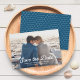 Die Blue Waves Full Foto Save the Date-Karte weist ein blaues Wellenmuster auf der Rückseite auf. Personalisieren Sie es, indem Sie den Platzhalter-Text ersetzen und das Foto für die Auswahl/den Platzhalter durch Ihr eigenes Foto ersetzen. Für weitere Optionen, wie zum Beispiel den Schriftart zu ändern und ihn zu vergrößern oder zu verändern, klicken Sie auf den Button "Anpassen". *Bitte beachten Sie, dass das Zazzle-Wasserzeichen, das in der Zoomvorschau angezeigt wird, NICHT auf dem gedruckten Endprodukt erscheint. © Rosewood and Citrus