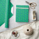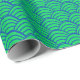 Dieses Verpackungspapier hat ein Art Deko Design von blauen gekrümmten Linien in einer Dreieck-Form auf einem Feld von grün wiederholt über das Design. Woll eine andere Farbe? Nachricht.