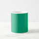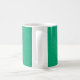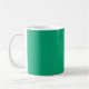 Diese Tasse hat ein Art Deko-Design von blauen gekrümmten Linien in einer Dreieck-Form auf einem Feld von grün wiederholt über das Design. Woll eine andere Farbe? Nachricht.