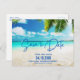 Strandhochzeit in tropisch blauem Wasser Save the Date Postkarten für Ihre Hochzeit in Urlaubsort. Passen Sie Ihre Hochzeitsdetails auf der Vorder- und Rückseite der Karte an. In der folgenden Kollektion finden Sie alle unsere Koordinierungsprodukte in diesem Design.