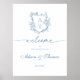 Elegante Kalligrafie staubblauen Blumen Monogramm Wappen Hochzeit klassisches Begrüßungspposter.