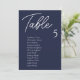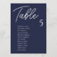 Moderne Blue Wedding Table Chart Cards sind die perfekte Touch für Ihren Hochzeitsempfang. Führe deine Gäste mit diesem einzigartigen Sitzplan zu ihren Plätzen. Die Karten sind ideal zum Aufhängen oder Anzeigen auf einem Brett oder einer Wand. Das Design verfügt über einen minimalen Skript-Schriftart mit eleganten san Serif in Weiß auf einem marineblau Hintergrund. Das Design ist beidseitig bedruckt.