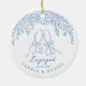 Blue Whimsical Cheers Our First Christmas Engaged Keramik Ornament