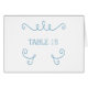 Moderne und einfache Whimsical Blühe Monogram Wedding Tischnummer Card mit einem eleganten Swirl Motiv in Blau. Einfach anzupassen, fügen Sie die entsprechende(n) Tischnummer(en) in das Textfeld ein. Klicken Sie auf "Anpassen", um weitere Personalisierungsoptionen zu erhalten.