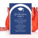 Navy-Blue-White-Bogen und Graduation Cap-Party Einladung für die Klasse von 2024 oder jedes Jahr. Text ist anpassbar, also machen Sie es zu Ihrem eigenen. Kontaktieren Sie mich für Hilfe bei der Anpassung oder um passende Produkte anzufordern.