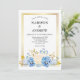Eine schöne blau-weiße Blüte mit goldenem Rahmen Rahmen Hochzeitseinladung. Personalisieren Sie alle Felder, um es zu Ihrem eigenen zu machen.