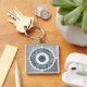 Blue White Blumenchinesisch Runde Schlüsselanhänger