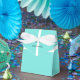 Blauer und weißer Bow Elegante Gastgeschenk Boxen. Passen Sie den Text für jedes Ereignis an. Matching-Elemente sind verfügbar.