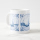 Hübsche Vintage Blau-Weiß Delft Kunst eines Segelbootes auf dem Wasser im Hafen, umgeben von Blumenelementen. Diese Kunst wird aus einer antiken handbemalten Fliese reproduziert. Klicken Sie auf Anpassen, um Ihren Namen oder Ihre Nachricht hinzuzufügen, die Hintergrundfarben zu ändern und Ihr Design für später retten.