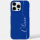 Blue White Elegant Calligraphy Script Custom Personalisiert Name iPhone 16 Pro Max Smart Phone Cases bietet ein modernes und trendiges, einfaches und stilvolles Design mit Ihrem personalisierten Namen in eleganter handgeschriebener Schrift Typografie auf blauem Hintergrund. Entworfen von ©Evco Studio www.zazzle.com/store/evcostudio