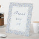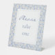 "Bitte nimm dir eins". Chic & frisch mit jugendlichem Charme. Dieses Hochzeitsockel-Gunst-Zeichen entzückt mit einem Set aus trendigem und modernem Schriftart-Set in einem knackigen weißen Rechteck und gerahmt mit einem blauen und weißen Blumenrand.