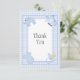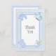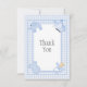Kariertes Gingham-Muster in Blau und Weiß mit Imitaten fühlten Babyartikel. Sweet "Danke"-Karte. Für die perfekte Jungenfeier stehen passende Artikel zur Verfügung.