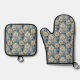 Blue White Gold Christmas Poinsettias Ofenhandschuh & Topflappen-Set