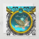 BLUE WHITE GOLD DAMASK STORK BABY SHOWER MONOGRAM EINLADUNG