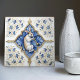 Dieses atemberaubende Fliesendesign besticht durch einen anmutigen Hare, der in der Mitte eine goldene Flöte spielt, umgeben von blauen Akanthus-Blätter und zarten goldfarbenen Blumenrollen. Inspiriert durch mittelalterliche und Renaissance-Keramik, erinnert das Muster an zeitlose Eleganz mit symmetrischer Anordnung und luxuriösen Details. Dieses Kunstwerk ist ein perfektes Design für Naturliebhaber, Regalmotive und Vintagen europäischen Stil. Es verleiht jedem Dekor oder Accessoire eine raffinierte und romantische Touch.