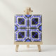 Moderne Keramik-Kacheln mit einem nahtlosen Muster aus geometrischen Formen in Blau, Weiß und Grau.