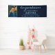 Navy blauen und weißen Abschluss Foto "Glückwunsch" Banner. Personalisiert mit dem Namen des Absolventen, seinem/ihrem Abschluss und dem Namen der Schule, zusammen mit einer zusätzlichen kurzen Botschaft am Ende. Kontaktieren Sie mich, um Hilfe bei Ihren Anpassungen zu erhalten oder um zusätzliche Matching oder Koordination von Zazzle Produkten für Ihren Abschluss zu verlangen.