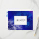 Ein individuelles RSVP-Kartenmuster für Winterurlaub mit einem eleganten Muster aus Kiefernbäumen und Pinecones in Blau und Weiß auf einem eisigen Hintergrund von Blues und Violett. Klicken Sie auf Anpassen, um Schriftart oder Farben, Größen und sogar Ihr Design für später retten.