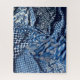 Eine Sammlung von blauen und weißen Indigodrucken und -mustern aus Thailand und Indien.