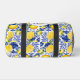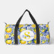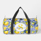 Blue White Lemon Tile Pattern Monogram Name Citrus Duffle Bag