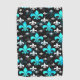Blau und Weiß klassische französische Lily-Blume-Lilie auf Vorderseite spiegelt das schwarze Hintergrundmuster wider