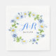 Blaugelbe, weiße, blumige personalisierte Monogramm Hochzeitspapiere Servietten. Diese blauen und weißen Servietten sind eine gute Wahl für eine Hochzeit im Sommer oder eine Hochzeit im Frühjahr. Diese kamile kaminige oder schastanienfarbene Blume personalisierte Hochzeitsserviette verfügt über einen wunderschönen, weiß getönten Kranz (weiße Blütenblätter, gelbe Mitte) mit blauen Blumen und grünen Blätter. Weitere Anpassungen sind möglich (Schriftart, Schriftart, Hintergrundfarben, etc.), indem Sie auf den "Klick, um den Link weiter anzupassen" unterhalb der Personalize-Optionen. Sie können auch die Größe der Serviette leicht ändern. Wenden Sie sich an den Designer, wenn Sie andere passende Elemente gewollt haben, die zu diesem Design passen, das noch nicht in der Auflistung enthalten ist.