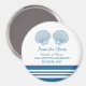 Elegante und klassische Nautical Muscheln Speichern Sie das Date Magnet mit einer einfachen Muschel und einer Reihe von Streifen in dunkelblau und weiß. Dieser Wasserstrand Save the Date ist leicht mit Ihren Hochzeitsdetails abgestimmt. Klicken Sie für weitere Anpassungsoptionen auf die Schaltfläche Anpassen.
