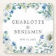 Fröhliche weiße Blume und grüne Aquarellfarben-Blätter bilden einen wunderschönen Rahmen für diesen hübsch blauen Frühling Hochzeit Untersetzer. Die schicke, schöne Gartenhochzeit.