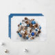 Wunderschöner Weihnachtskranz mit blauen Ziern, Kiefernzapfen und mehr und Ihr personalisierter Gruß auf der Rückseite. *Fügen Sie auch ein Foto auf der Rückseite hinzu. Wählen Sie Matte für schwerstes Papier und High Definition für beste Druckqualität.