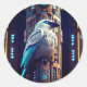Blue White Raven 2 Runder Aufkleber