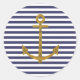 Blue White Stripes Gold Anker Glitzer Print Runder Aufkleber