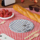 Blue White Wildblume Gingham Kariert Bauernhof Pappteller