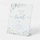 Elegante, zarte Aquarellfarben und stilvolle, moderne Schrift, Pastellpaletten aus sanft gelblich, cremefarben, schludrig, staubblau und botanisch-grüne, schlicht und romantisch. Große Liebe ist süß nehmen Sie ein Leckerei Zeichen für rustikale botanische Gartenhochzeit im Frühling und Sommer. Sehen Sie sich alle passenden Stücke in der Sammlung an.