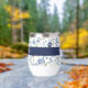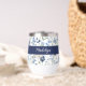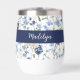 Relax after your workout with a nice wine in this personalized wine tumbler with a beautiful blue boho wildflower pattern with monogram name.