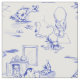Blue Willow Kitty Cat Bad Toile Stoff