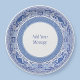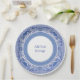 Schöne Blue Willow Papier Teller für Ihre nächste Veranstaltung! Ein klassischer Blue Willow-Rahmen mit anmutigen, sauberen Linien umkreist den Teller mit Platz im Zentrum für Personalisierung.