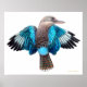 Originelles Kunstdesign eines fliegenden Blue Winged Kookaburra aus Australien von Designer Carolyn McFann auf einem hochwertigen Poster für Vogelliebhaber gedruckt.