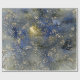 Ein neutrales Urlaubspapier in Saphir Blau und Gold mit einem wasserfarbenen, dunkelfarbenen Himmelshintergrund mit bemalten Beeren auf Ästen unter goldenem Schneefall.