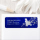 Dieses markante Rücksendeetikett zeichnet sich durch eine silberne Silhouette aus. Das englische Cocker Spanisch Hundebild steht vor einem Spritzer verzierter Silberschneeflocken. Das Bild wird auf einem Gradienten tiefblauen Hintergrund platziert. Ihr eigener Text ist in passendem Silber am links Bild.