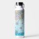 Hier ist eine hübsche Wasserflasche für die Weihnachtszeit, die den ganzen Winter lang großartig aussieht, und bis in die Frühlingssaison. Es zeichnet sich durch eine glitzernde Konfetti oberer Rand mit einem Gradientenblau schneebedeckten Hintergrund aus. Verzierte Schneeflocke ergänzen das Design.