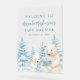 Make a stunning first impression with this elegant Winter Polar Bear Baby Shower Acrylic Welcome Sign, featuring whimsical watercolor artwork of a mama and baby polar bear reading together in a snowy forest. The soft pastel blues, winter pine trees and frosty atmosphere create a beautiful seasonal style that welcomes guests with warmth and charm.