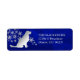 Dieses markante Rücksendelabel zeigt ein silbernes Retriever-Image vor einem Spray aus verzierten Silberschneeflocken. Das Bild wird auf einem Gradienten tiefblauen Hintergrund platziert. Ihr eigener Text ist in Silber passend rechts neben dem Bild. Schön!