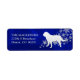 Dieses markante Rückadresslabel besticht durch eine silberne Silhouette des St. Bernard Hundes vor einem Spritzer verzierter Silberschneeflocken. Das Bild wird auf einem Gradienten tiefblauen Hintergrund platziert. Ihr eigener Text ist in passendem Silber am links Bild. Hübsch!