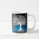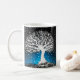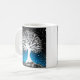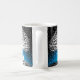Detaillierte Silhouette auf einem dunkelblauen Hintergrund. Schnee kommt sanft herunter. Das ist ein auffallendes Design für eine großartige Tasse Kaffee.